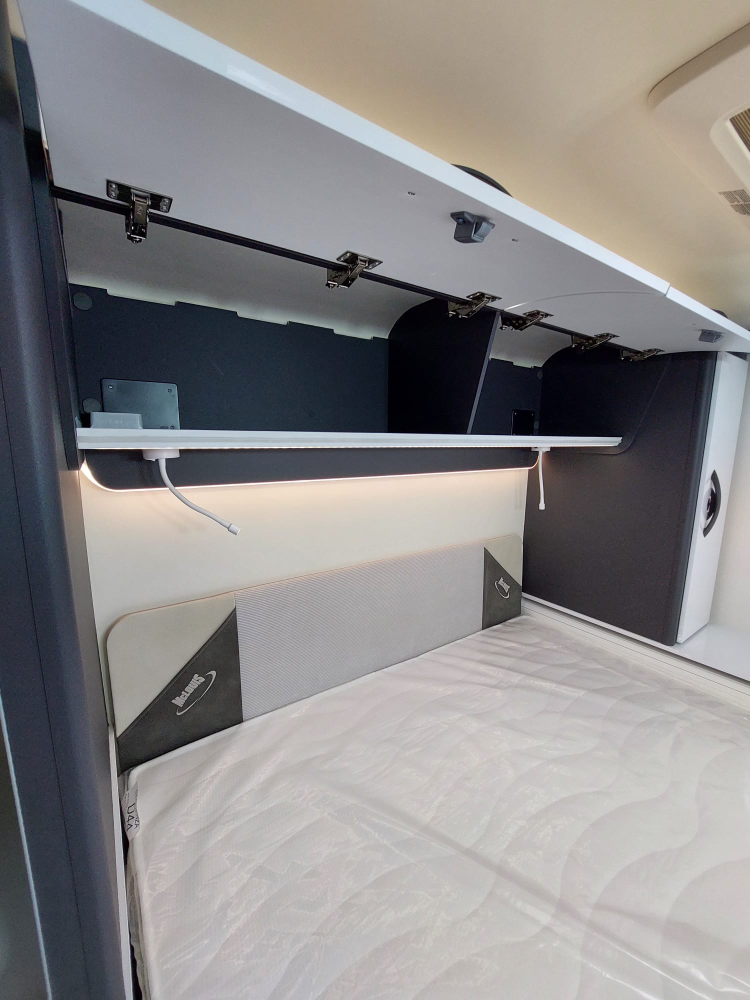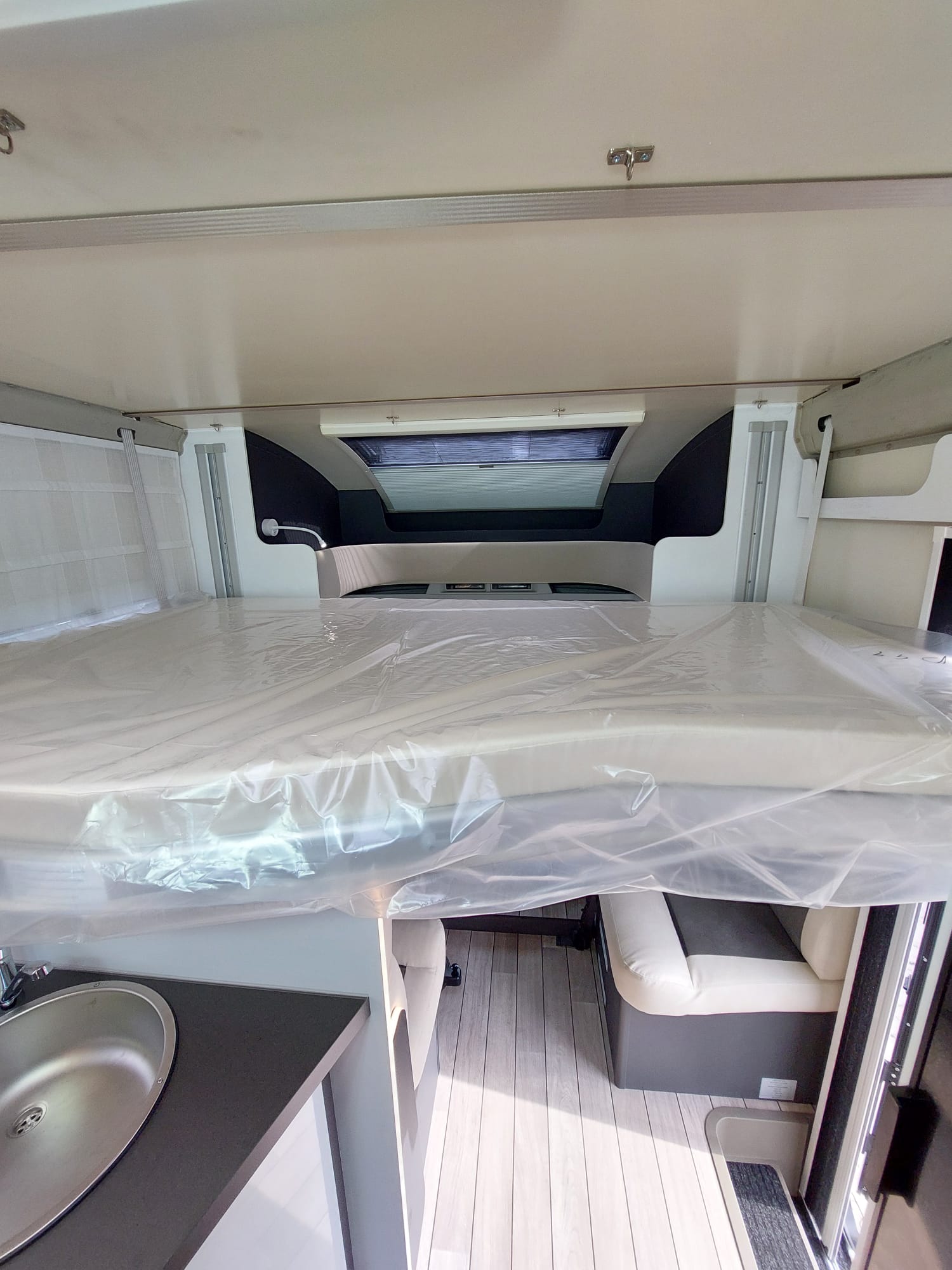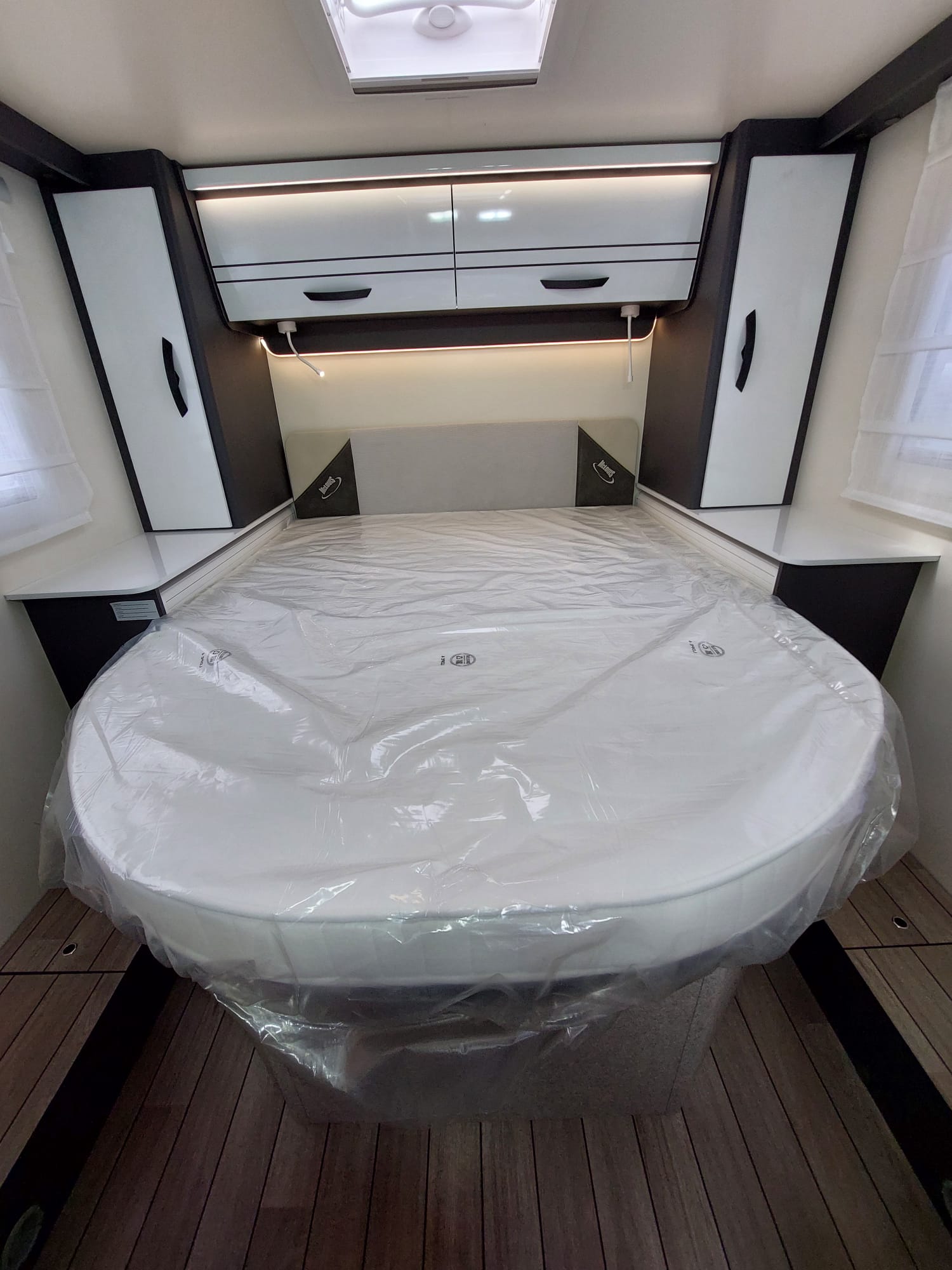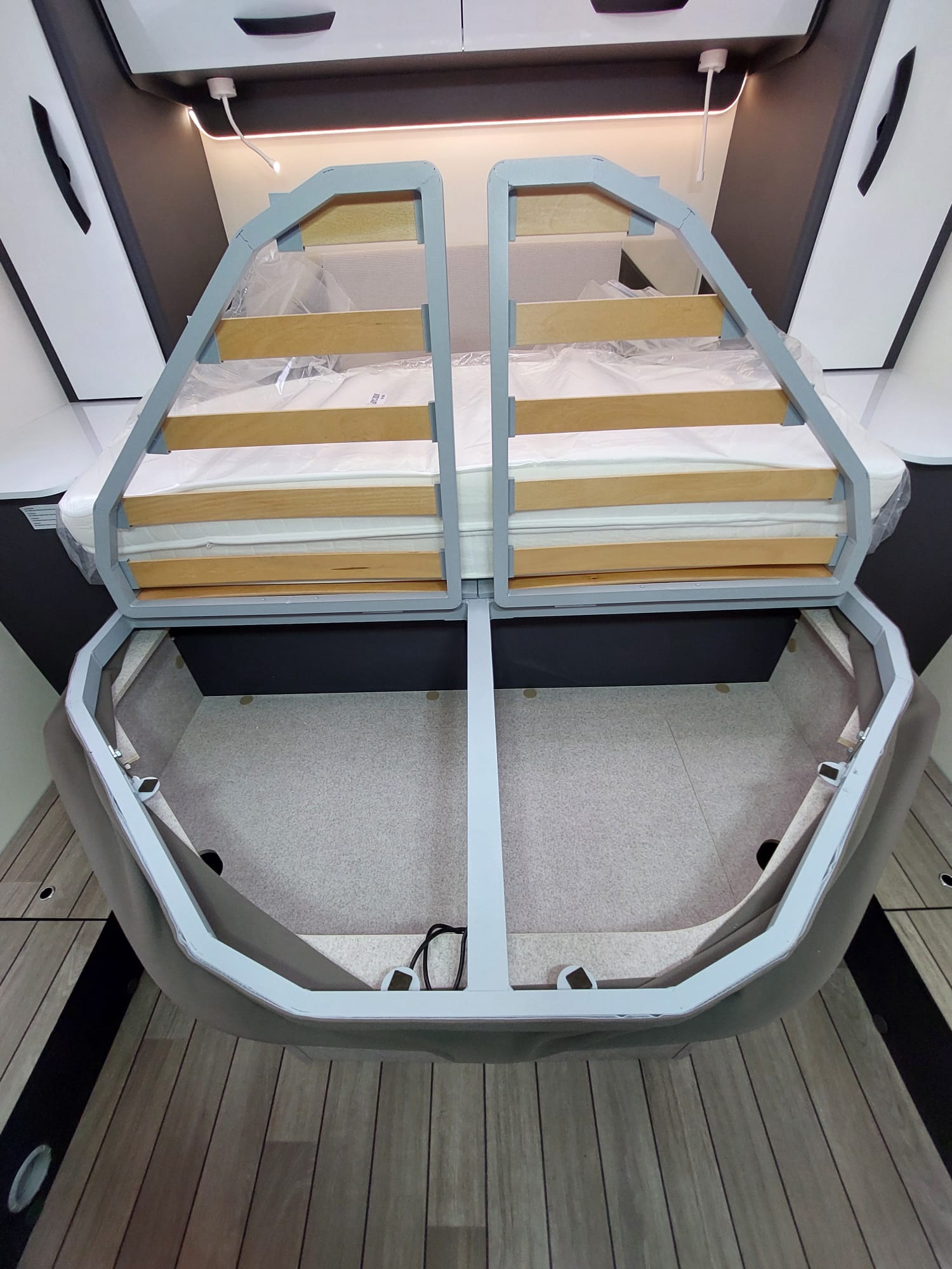 Bardzo przestronny model z łóżkiem poprzecznym i drugim opuszczanym elektrycznie.