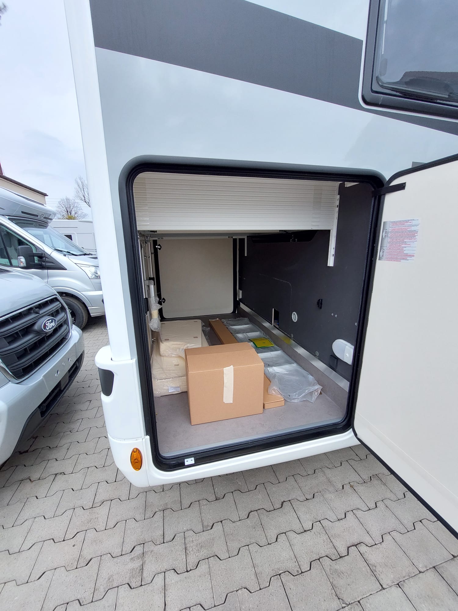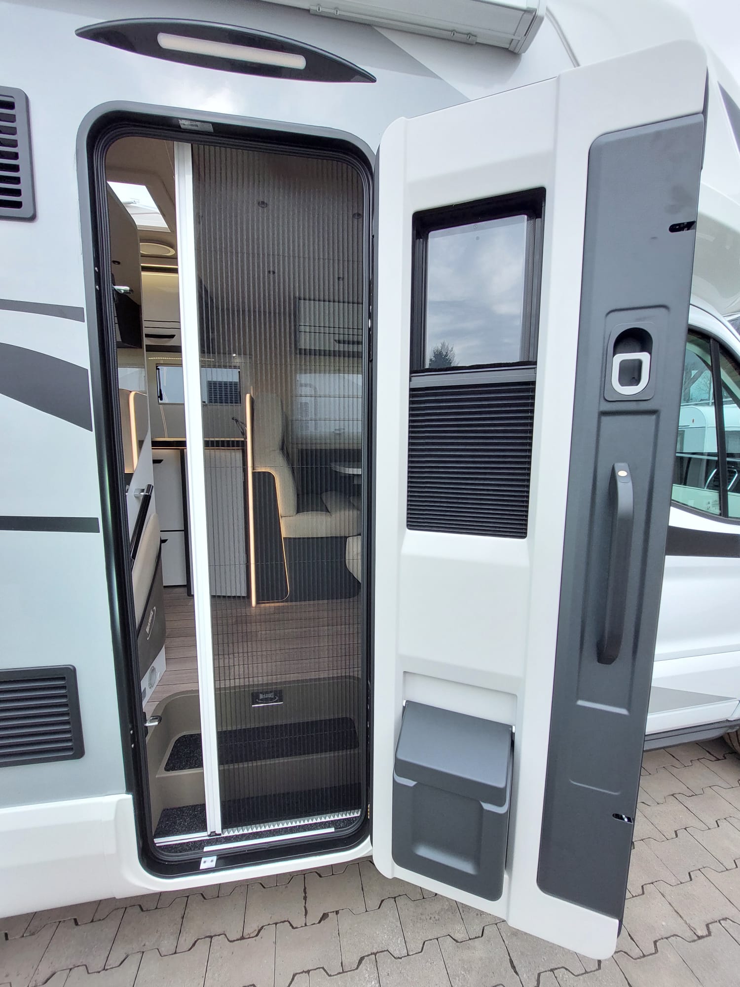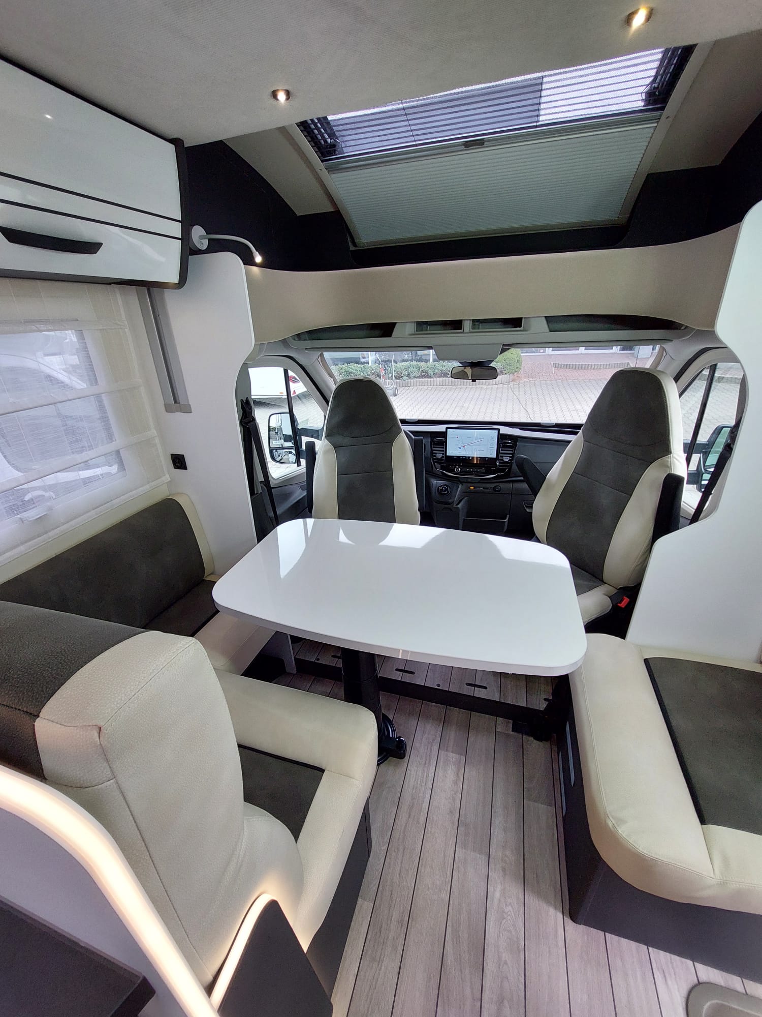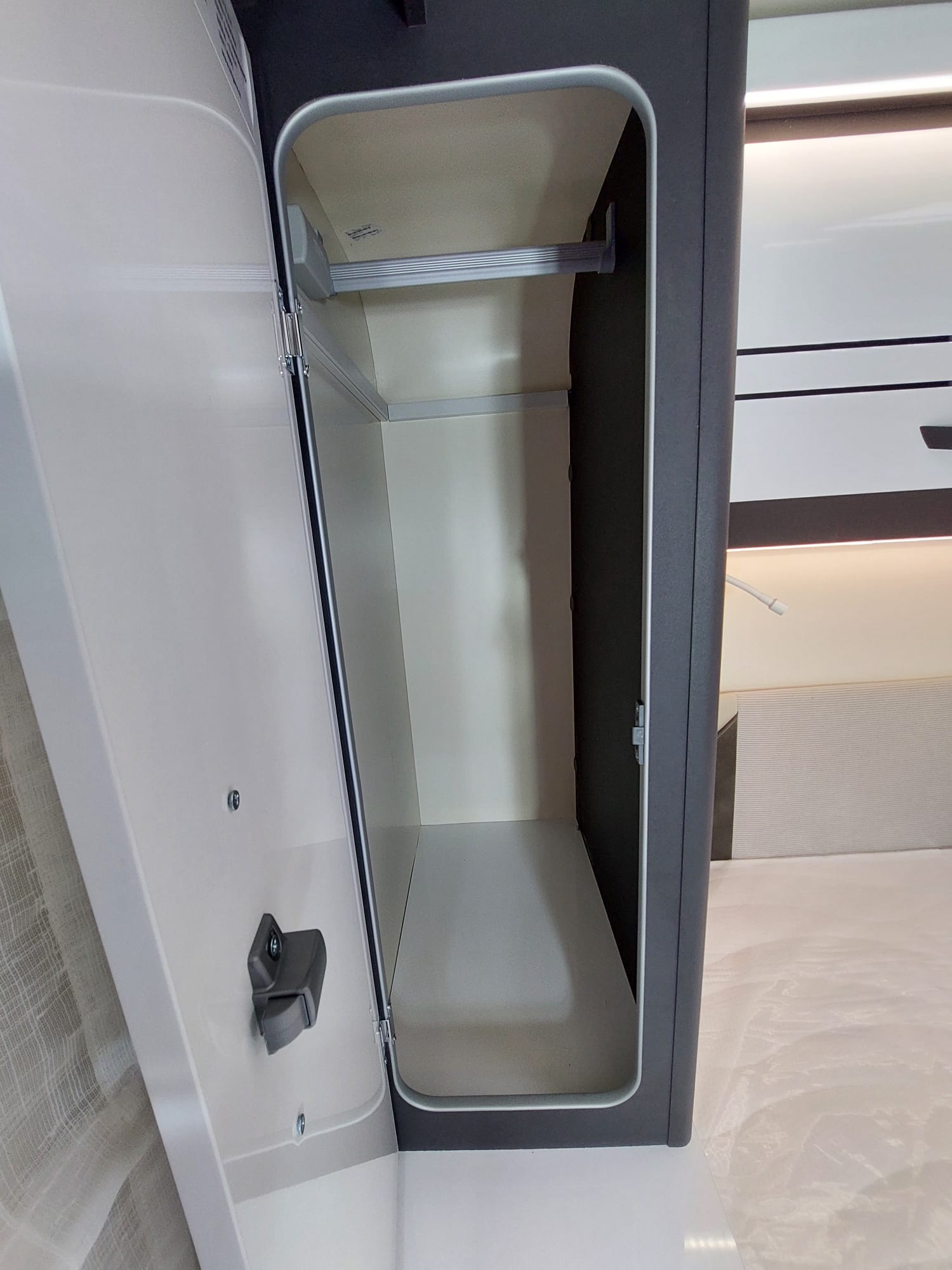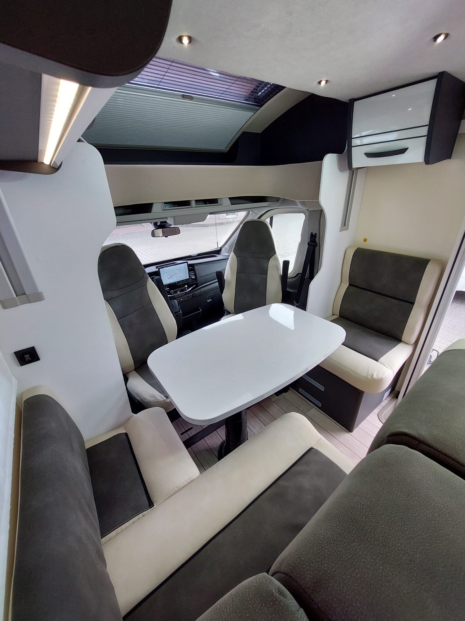 Bardzo przestronny model z łóżkiem poprzecznym i drugim opuszczanym elektrycznie.