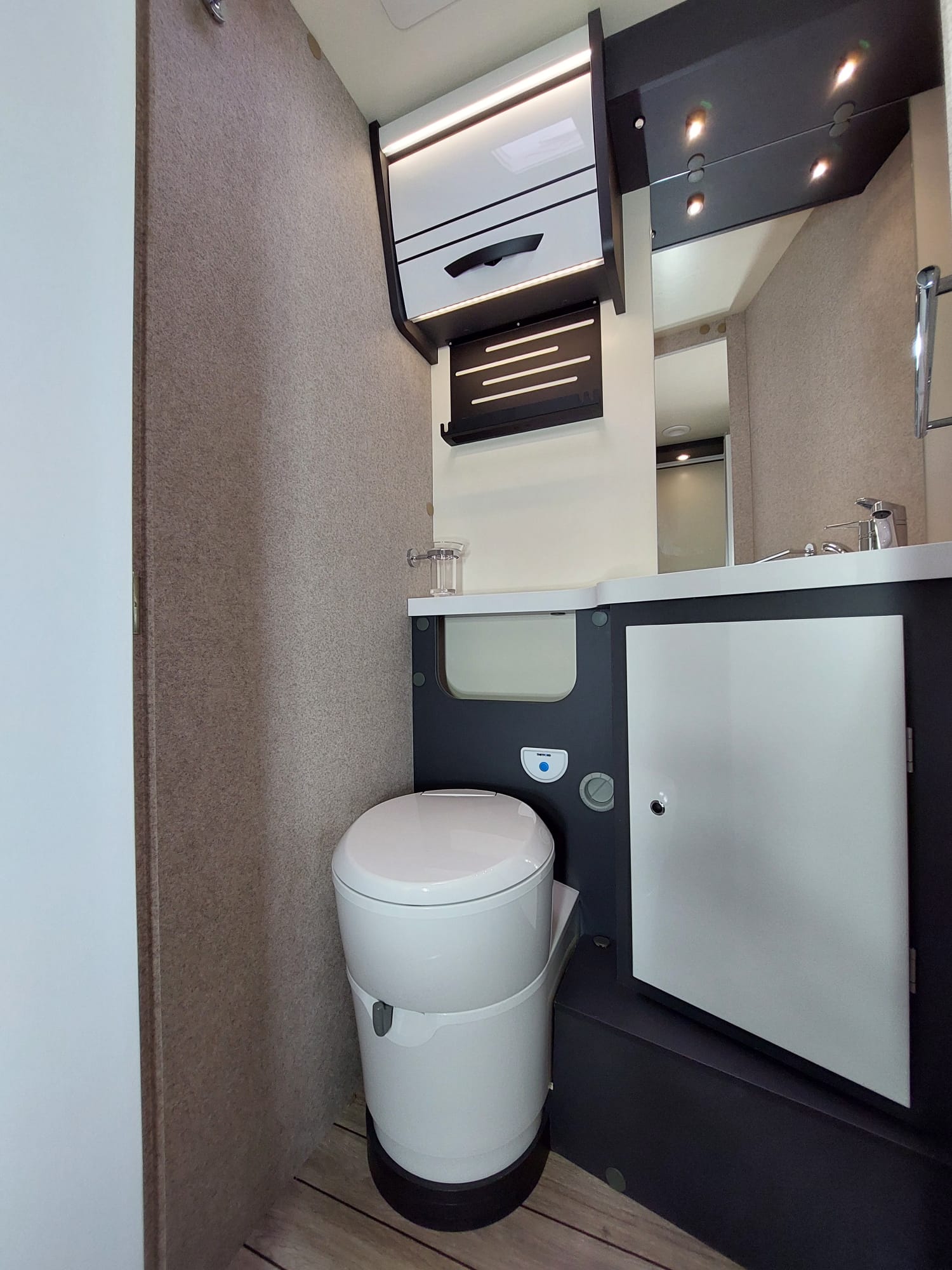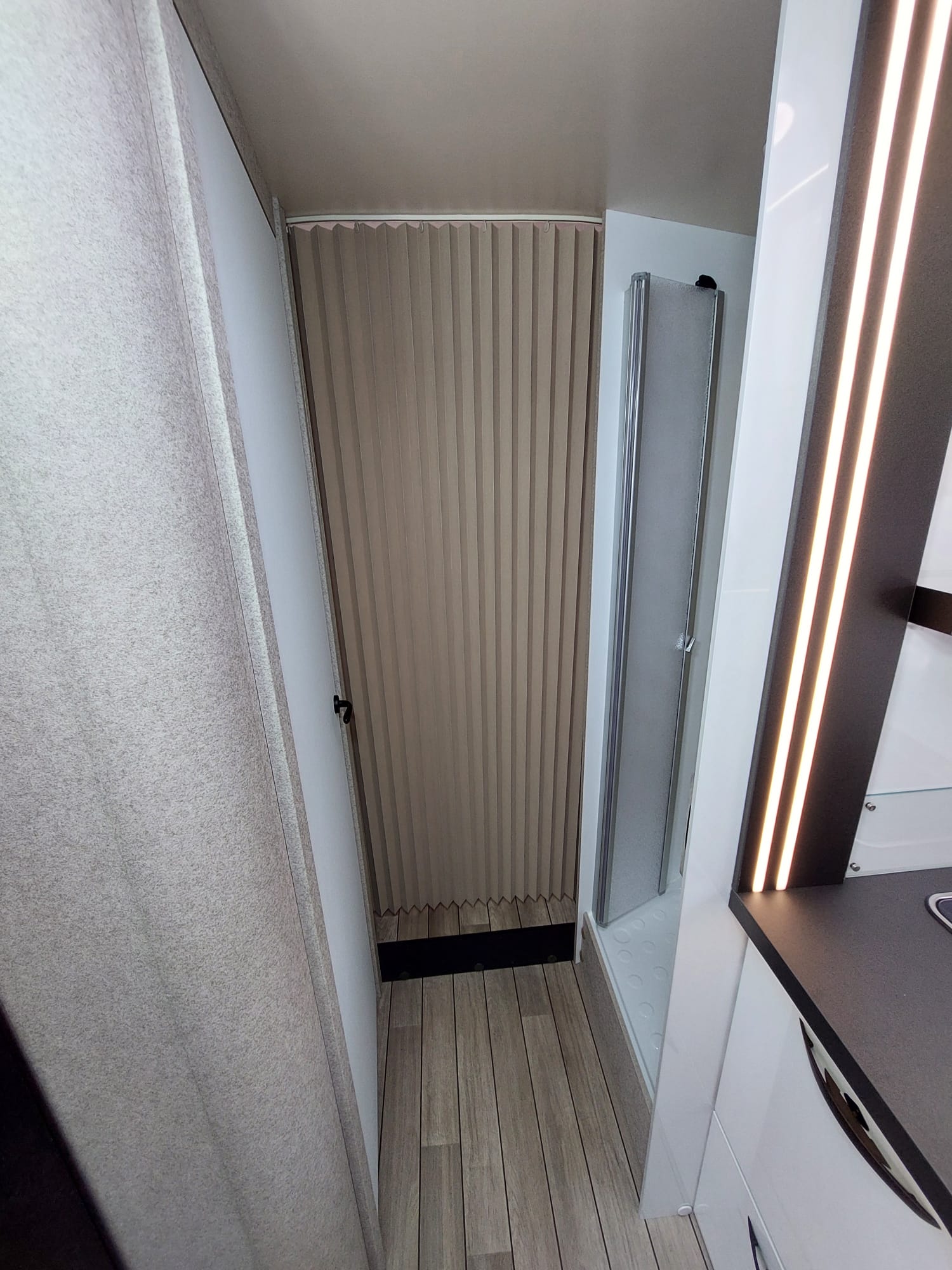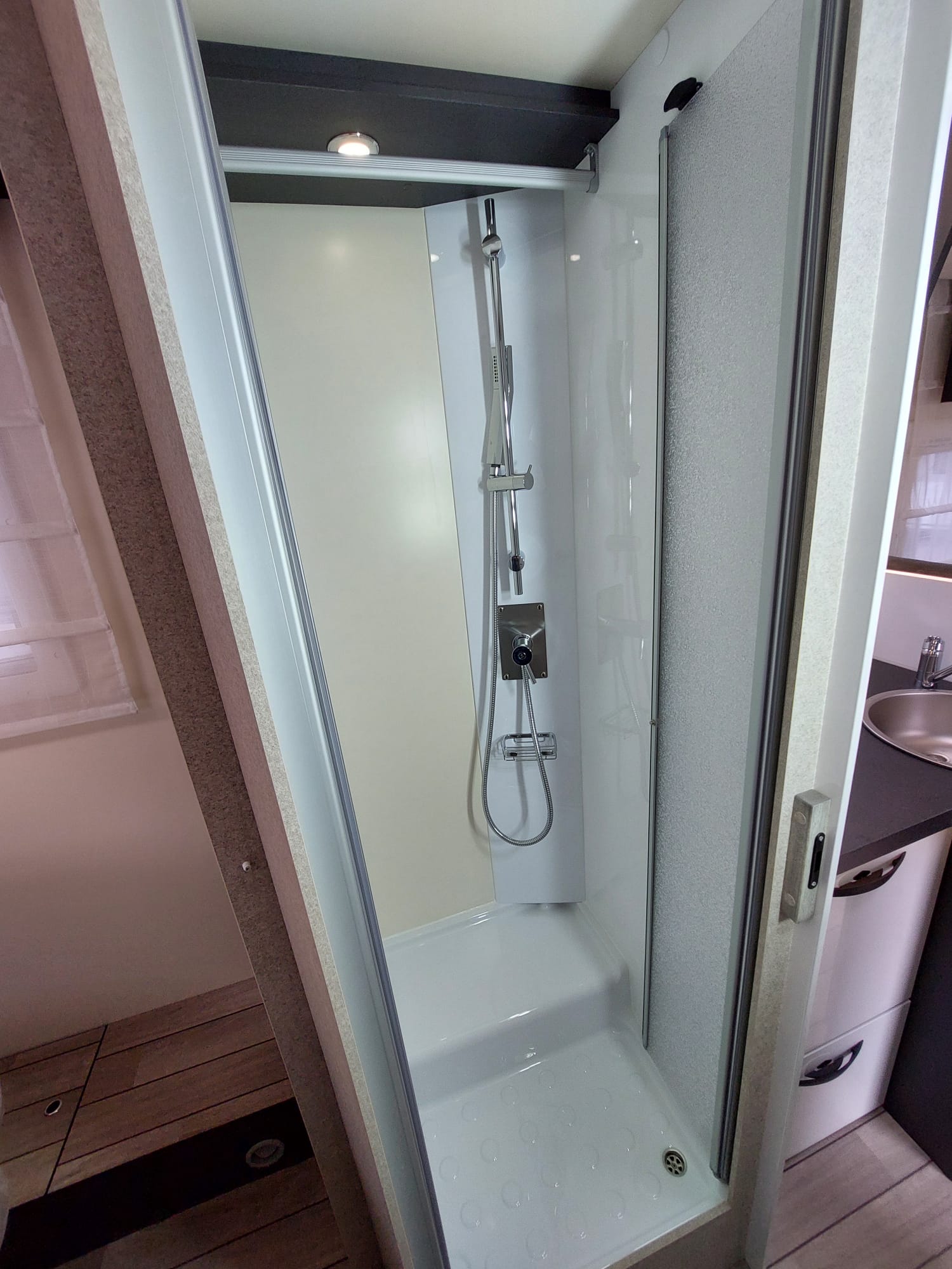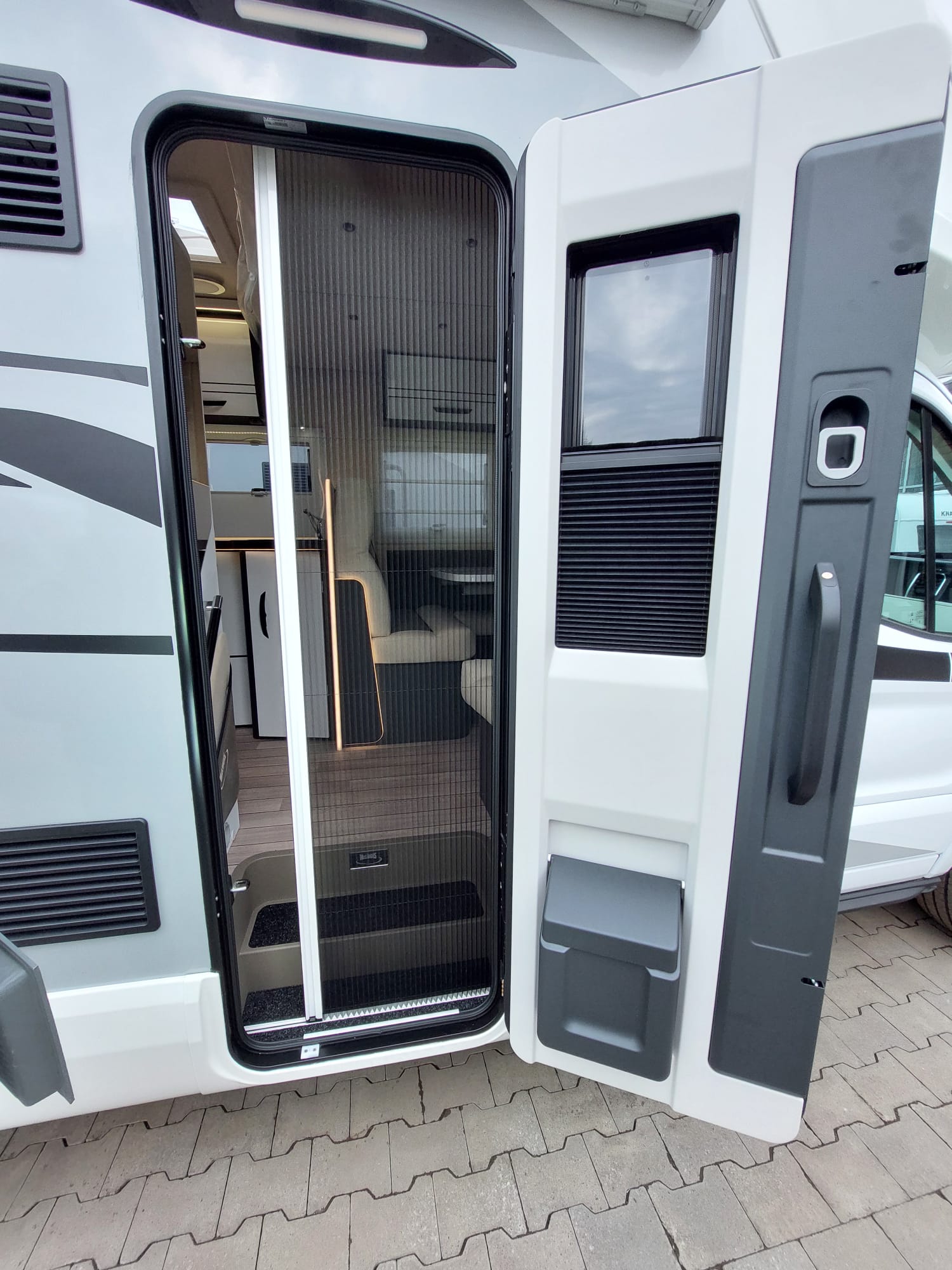 Bardzo przestronny model z łóżkiem poprzecznym i drugim opuszczanym elektrycznie.