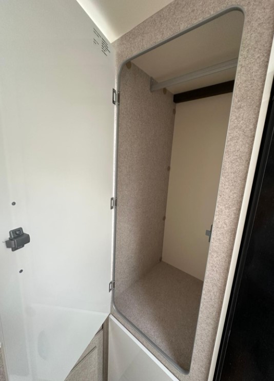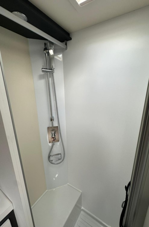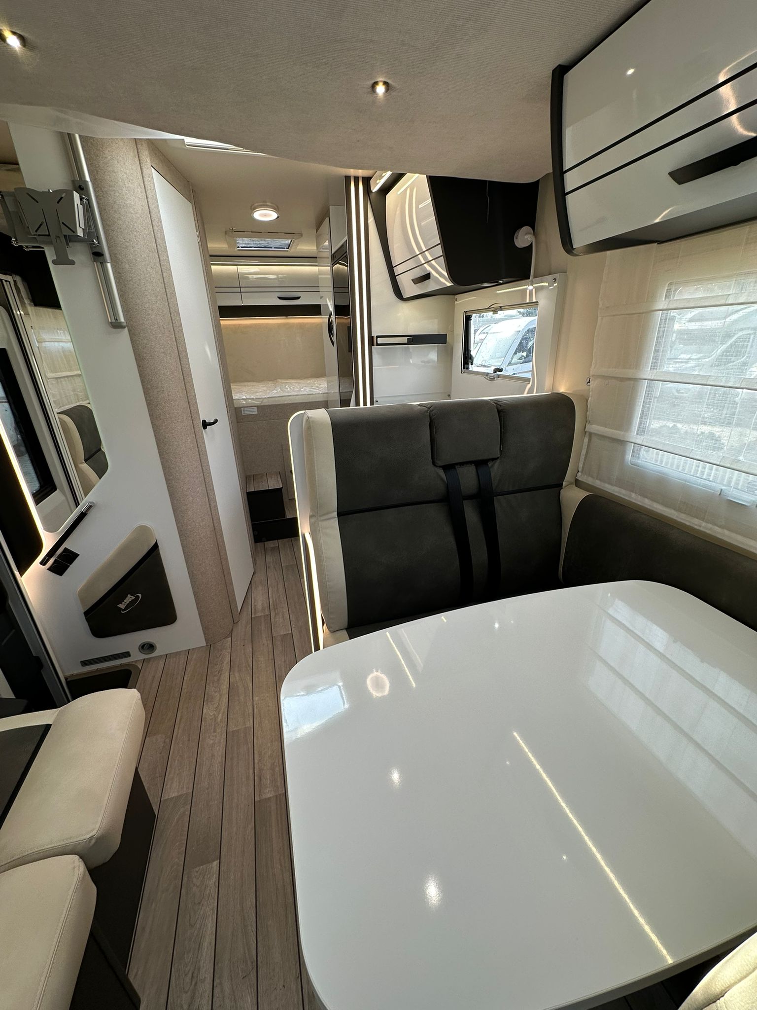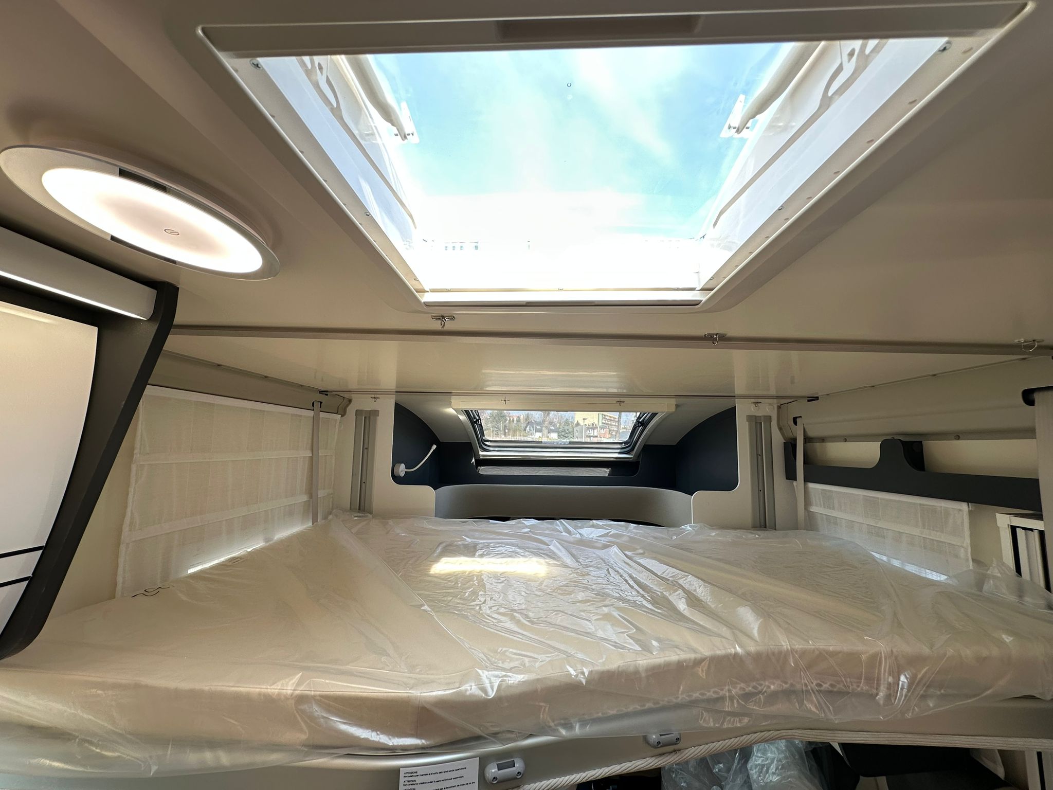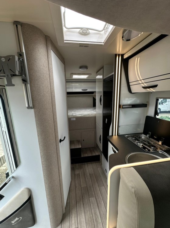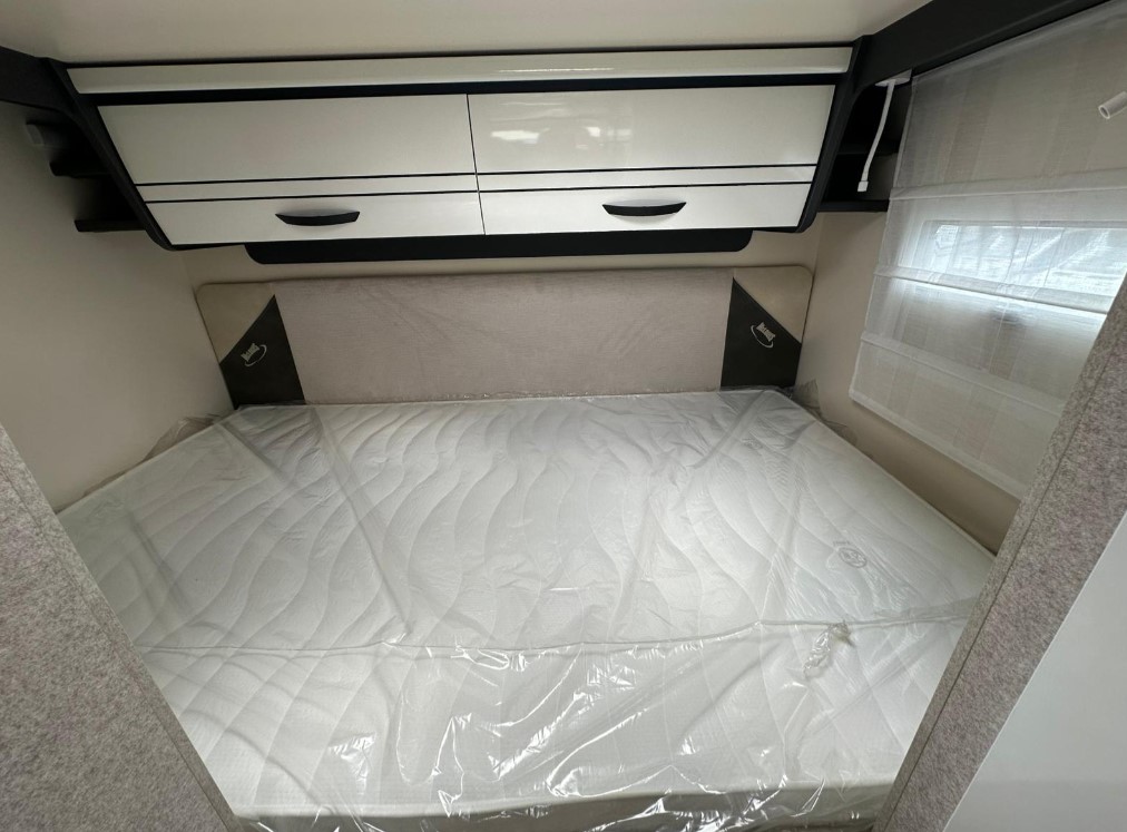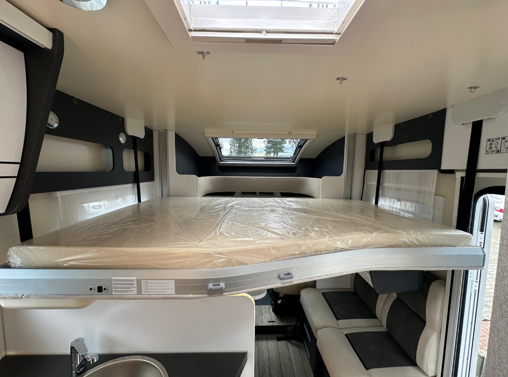 Bardzo przestronny model z łóżkiem poprzecznym i drugim opuszczanym elektrycznie.
